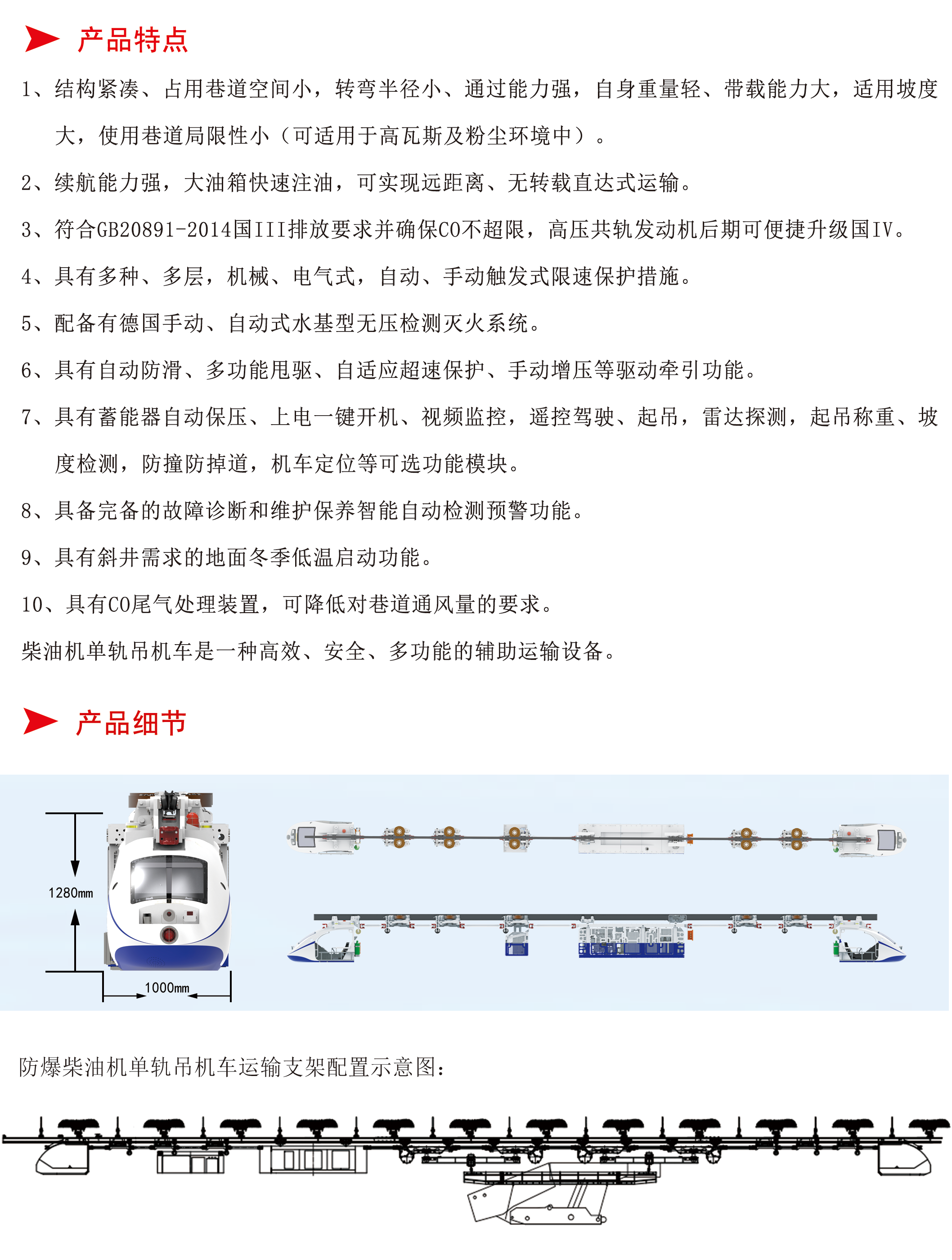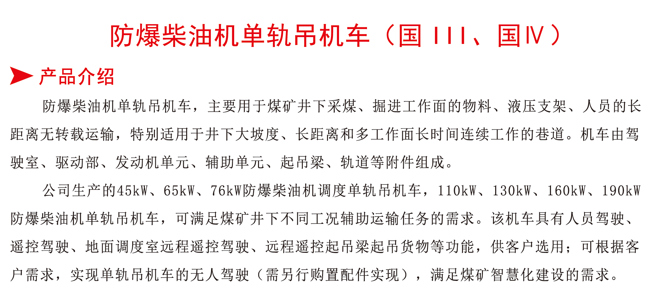 防爆柴油機(jī)單軌吊機(jī)車(chē)