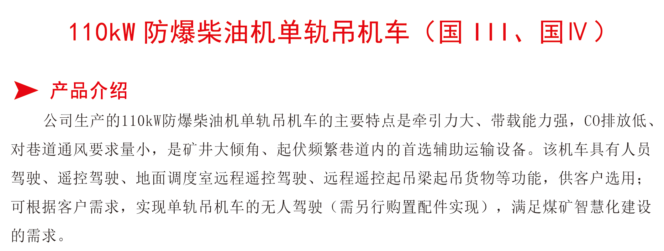 防爆柴油機(jī)單軌吊機(jī)車